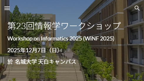 NEWS 名城大学情報工学部の「今」をお届けします。 2025.9.30 大学院生が情報処理学会コンシューマ・デバイス&システム研究発表会で研究奨励賞を受賞しました #2025#受賞#吉川雅弥#在学生#大学院 2025.9.30 大学院生が産業応用工学会全国大会で学生賞を受賞しました. #2025#受賞#吉川雅弥#在学生#大学院 2025.9.29 情報工学部主催で学会(第23回情報学ワークショップ WiNF2025)を開催します #2025#イベント#学会#研究 2025.9.22 吉川教授の研究が毎日新聞で紹介されました #2025#メディア掲載#吉川雅弥 2025.9.16 ごみ収集プロセスの効率化とスマート化を目指した取り組みを実施 #2025#連携協働事業#鈴木秀和 2025.9.1 情報工学研究科修士課程を紹介するページを公開しました. #大学院 +MORE +MORE +MORE