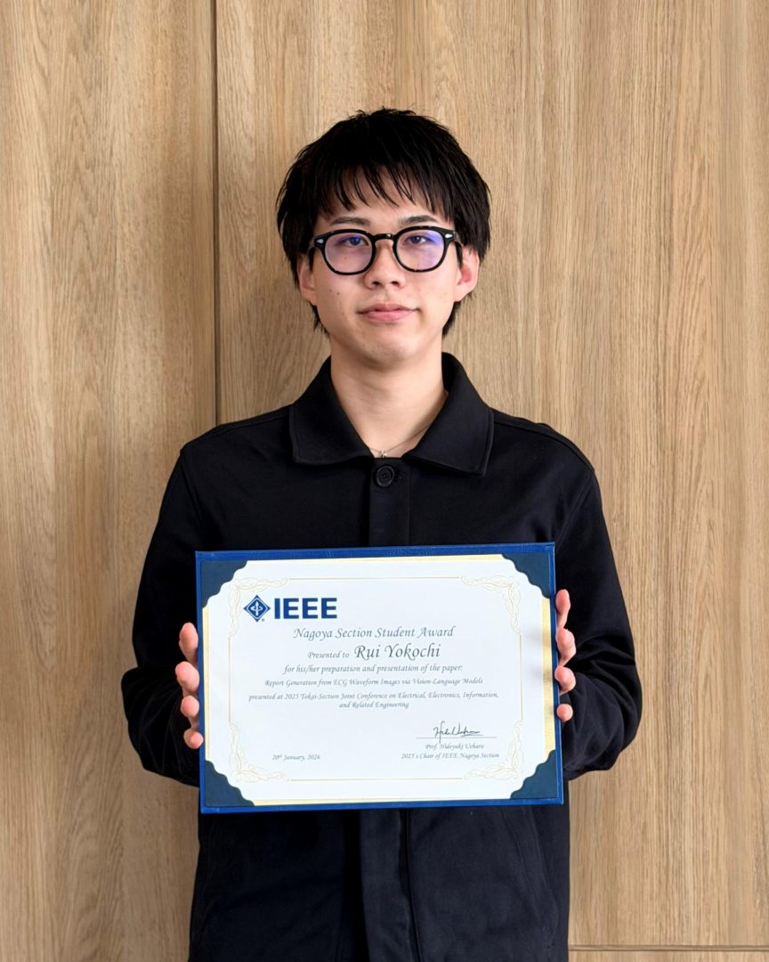 NEWS 名城大学情報工学部の「今」をお届けします。 2026.1.26 大学院生が電気・電子・情報関係学会東海支部連合大会でIEEE名古屋支部学生奨励賞を受賞しました 2026.1.7 柳田康幸教授が日本バーチャルリアリティ学会よりフェローとして表彰されました #2025#受賞#柳田康幸#研究 2026.1.7 情報工学研究科・情報工学部の学生が情報学ワークショップで奨励賞を受賞しました #2025#亀谷由隆#佐川雄二#受賞#川澄未来子#柳田康幸#田中敏光#米澤弘毅 2026.1.7 情報工学部学部生チームがIVRC2025(ヴァーチャルリアリティ関連のコンテスト)で総合3位・川... #2026#Enjoy Leaningプロジェクト#イベント#受賞#柳田康幸 2026.1.6 第23回情報学ワークショップを天白キャンパスで開催しました #2025#イベント#研究 2025.12.16 情報工学部のグローバル人材育成を社会連携フォーラムで紹介しました #2025#イベント#川澄未来子 +MORE +MORE +MORE