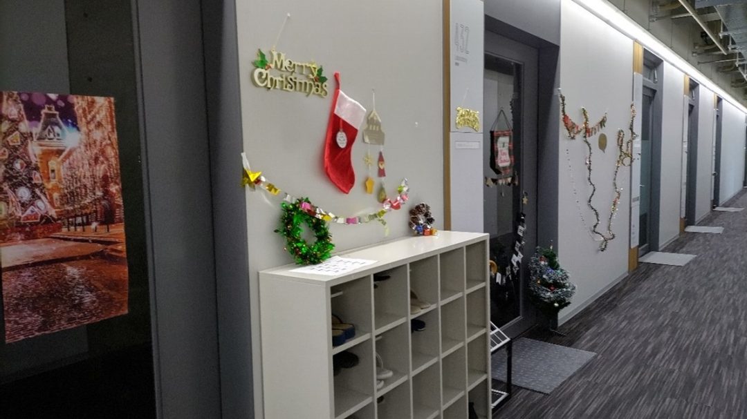 今のところ、研究室の周辺だけですが、「季節感を感じる研究室ライフ」を心がけています。数年前から、七夕、ハロウィン、クリスマスなど、研究室の周りを飾り付け、研究室内ではお茶会を開いて季節イベントを楽しんでいます。
